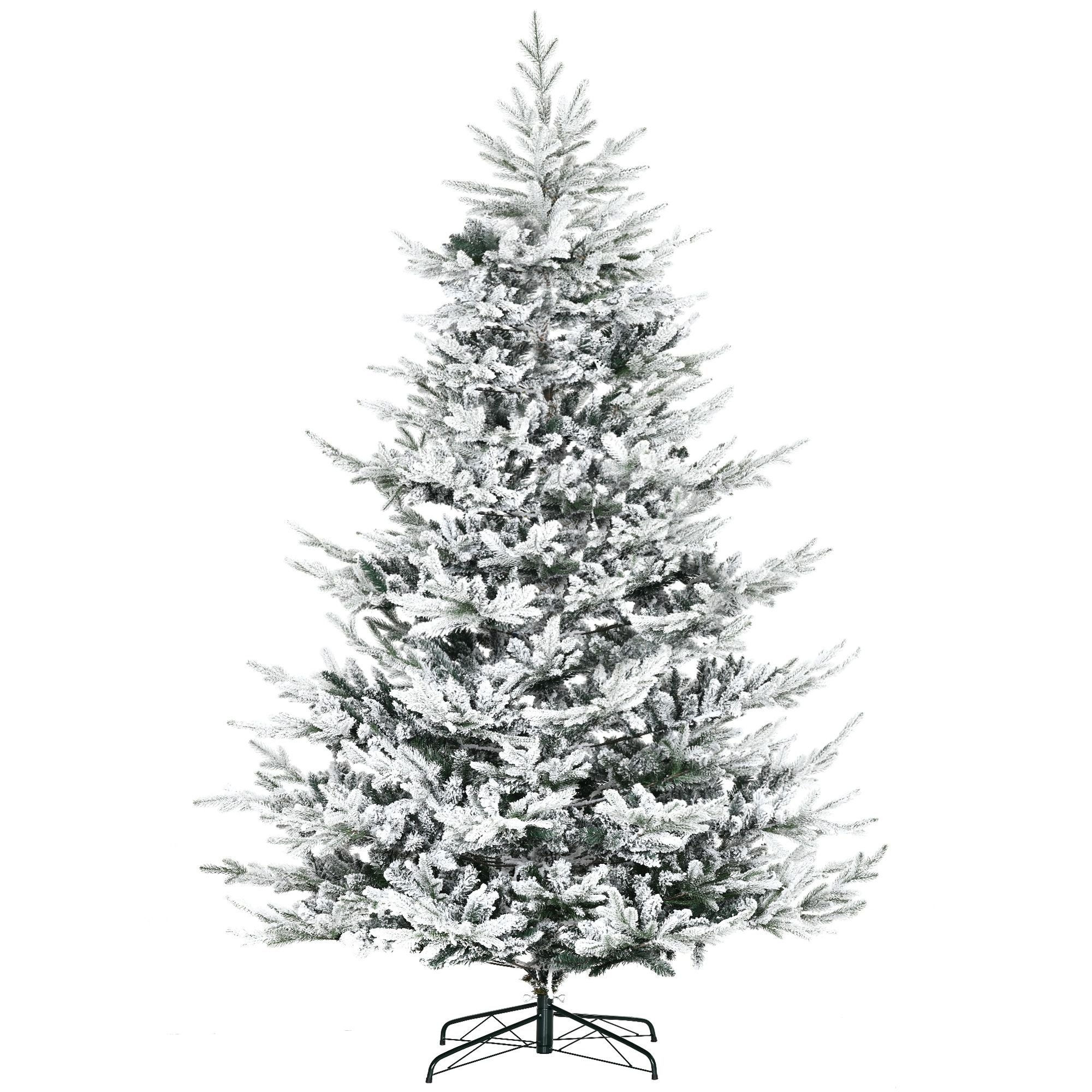 Home > 8 Foot Pine Snow Flocked Artificial Christmas Tree with 1479 Realistic Cedar Branches, Auto Open, Home Holiday Decoration, Green